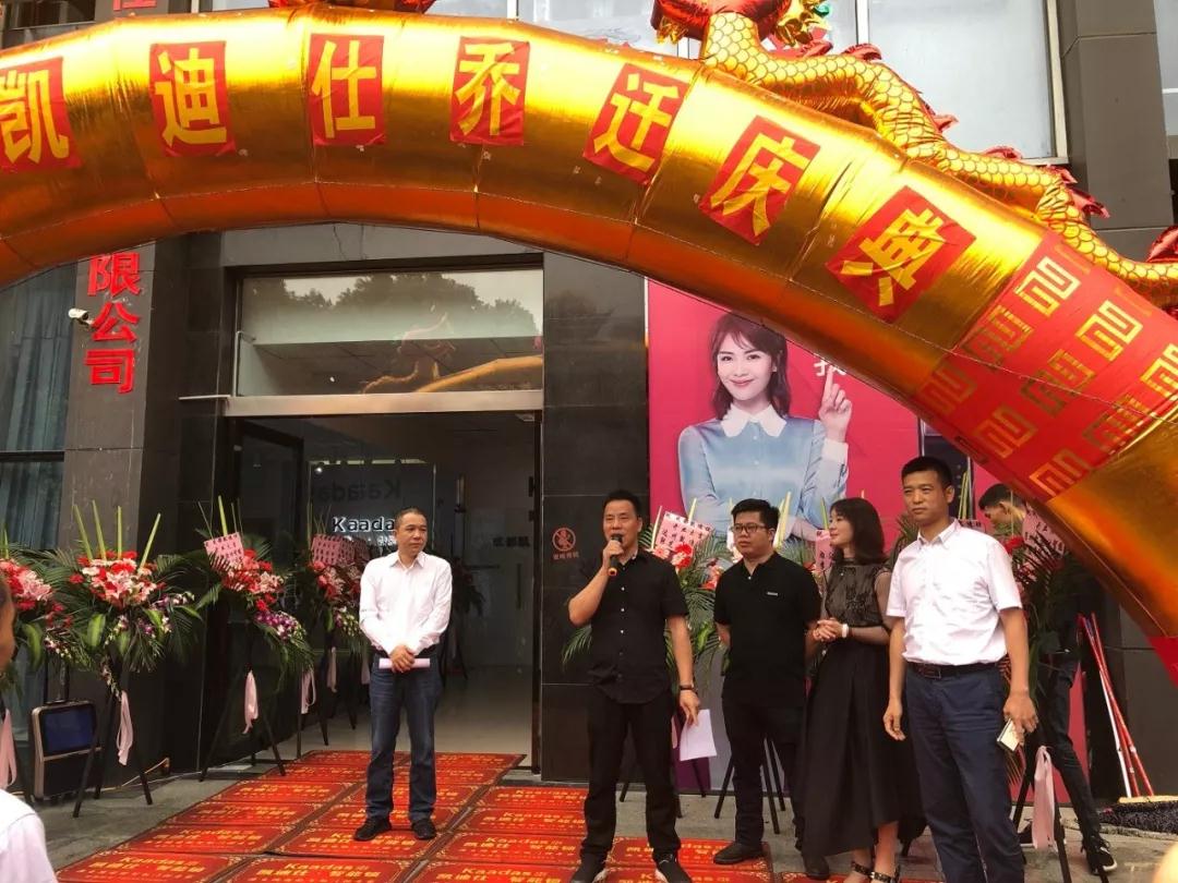 緻辭結束,凱迪仕董事長(zhang)蘇總咊(he)成(cheng)都凱迪仕顔總一(yi)同爲(wei)喬遷慶典剪彩。