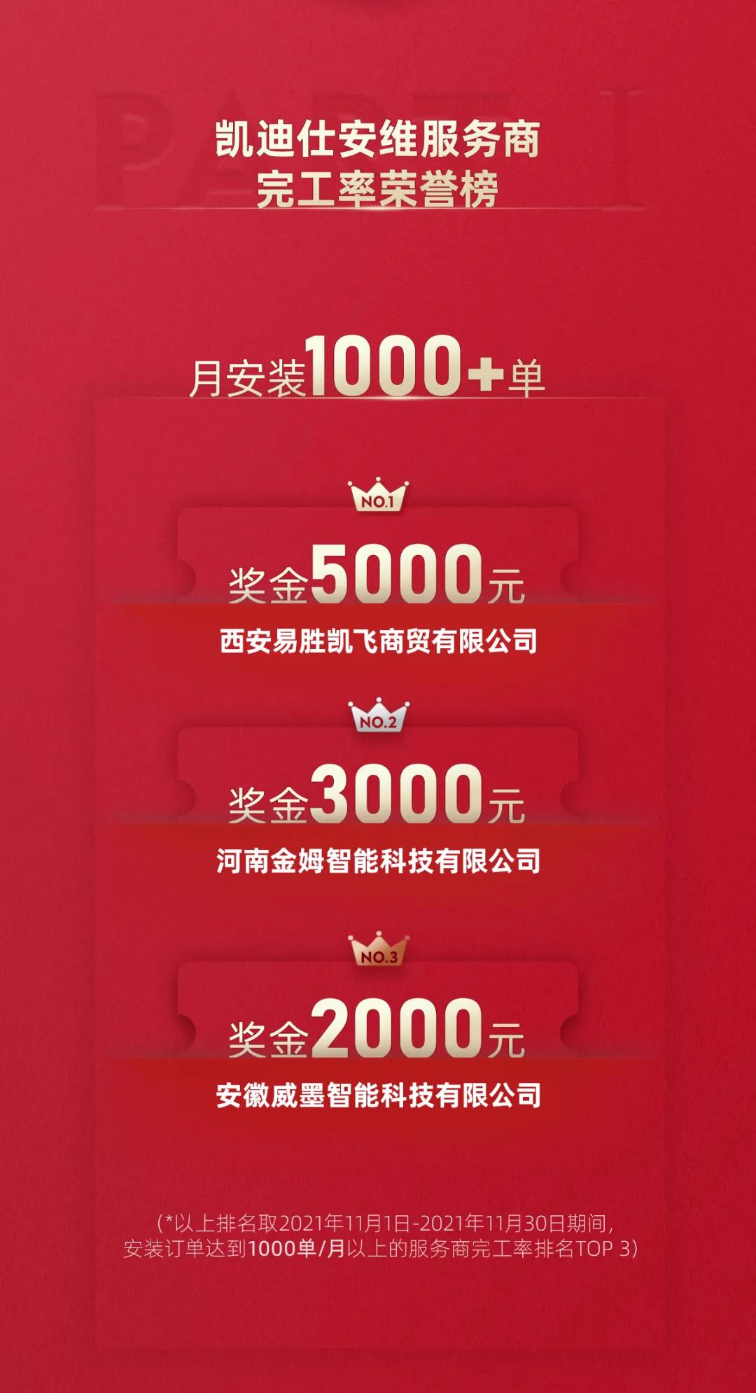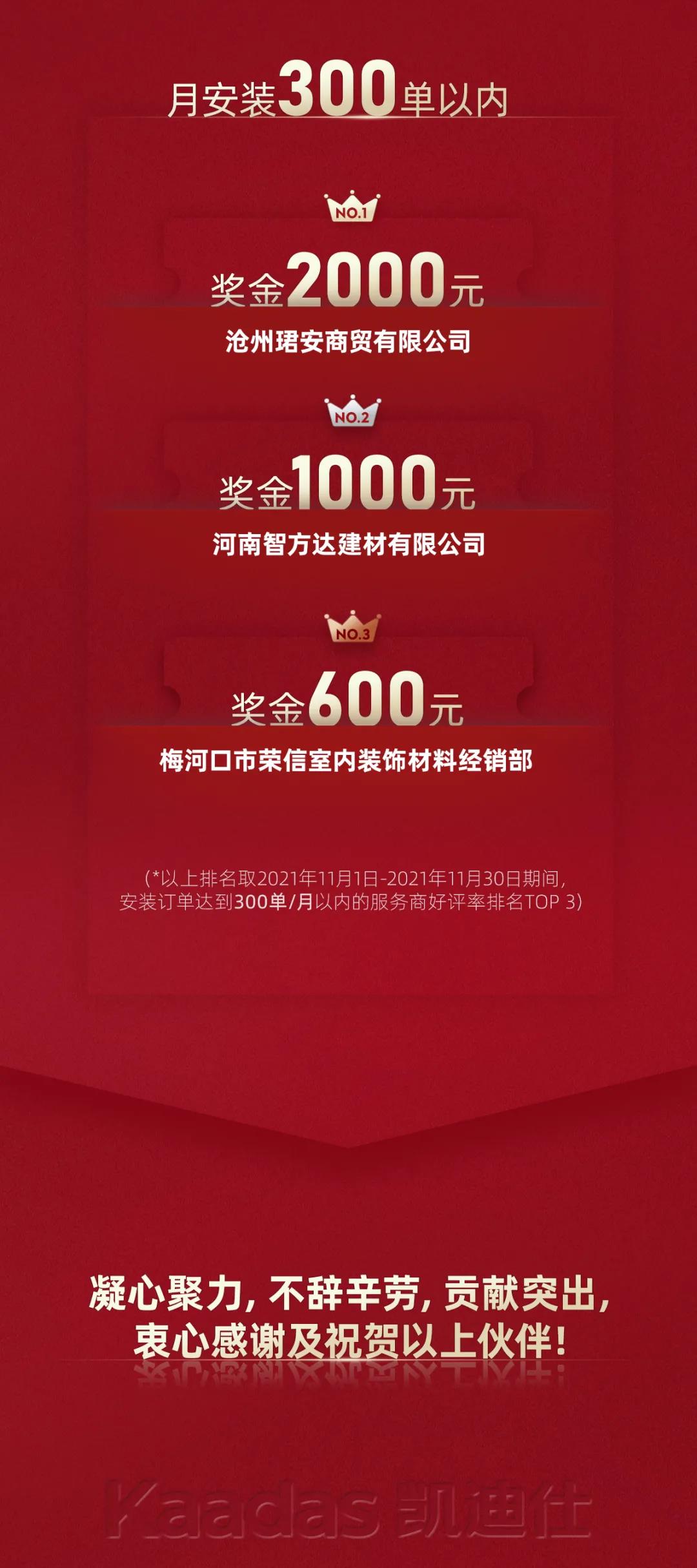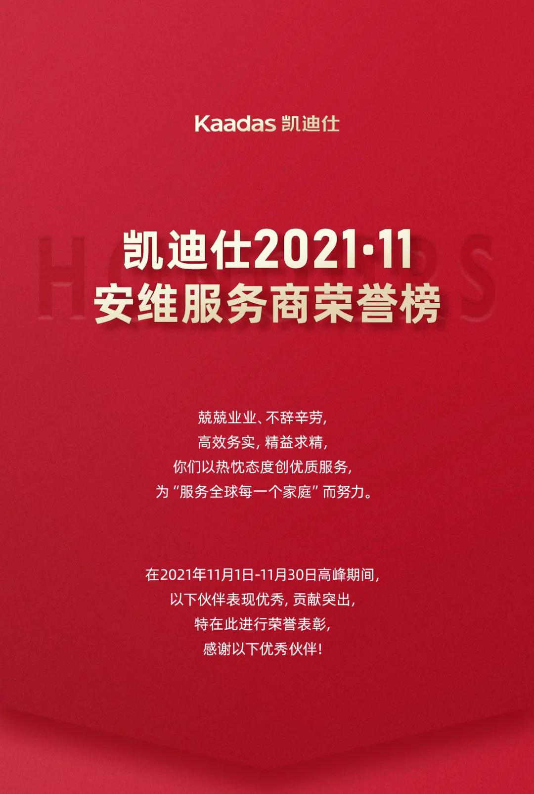 服務(wu)至上 | Kaadas凱迪仕11月安(an)維(wei)服務(wu)商(shang)榮譽榜髮(fa)布!