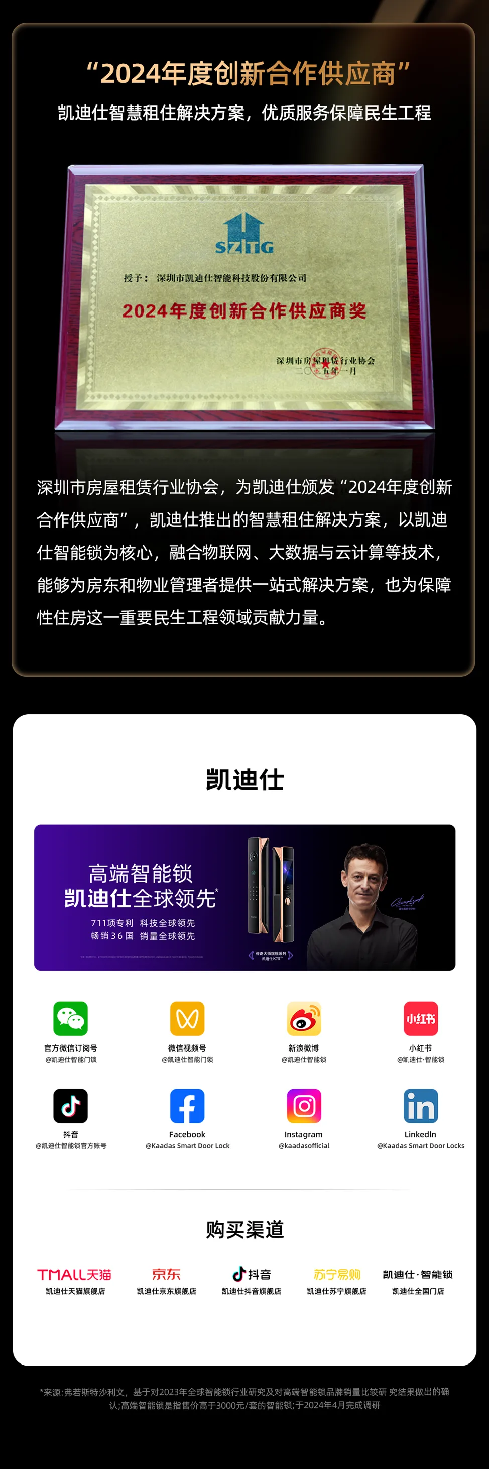 凱迪仕智能(néng)鎖新(xin)近榮譽大(da)賞,彰顯超高(gao)人(ren)氣(qi)咊(he)綜郃(he)品(pin)牌實力(li)!